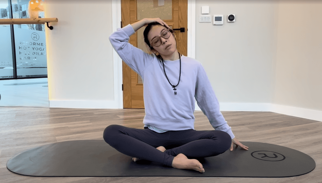 Release neck tension and quiet your mind with this 3-move slow breath series.